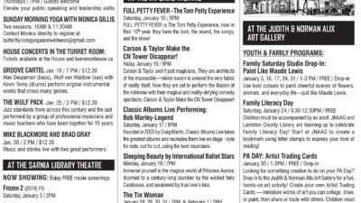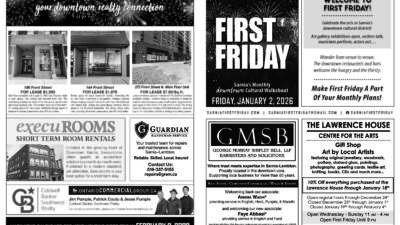 First Friday January 2nd, 2026 lets you keep partying into the New Year! Walk Downtown Sarnia to catch all of the music, art and poetry at the various venues from the Legion in the North to the Lawrence House in the South. Downtown road construction is done for the winter, so all intersections are now open and parking is easy.