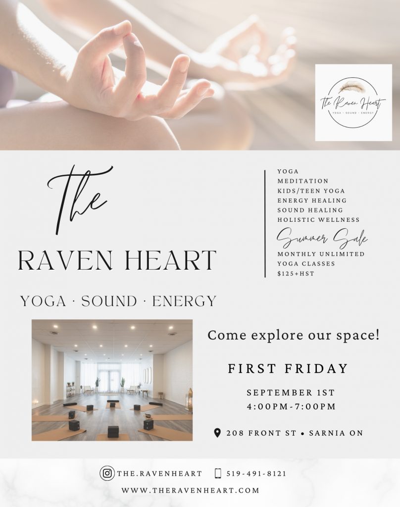 The Raven Heart – A Healing Sanctuary offering Yoga, Meditation, Sound & Energy Healing 4 – 7 PMFirst Friday September 2023 / The Raven Heart Full Monthly Yoga Schedule Special Events Holistic Wellness 208 Front St. https://www.theravenheart.com/